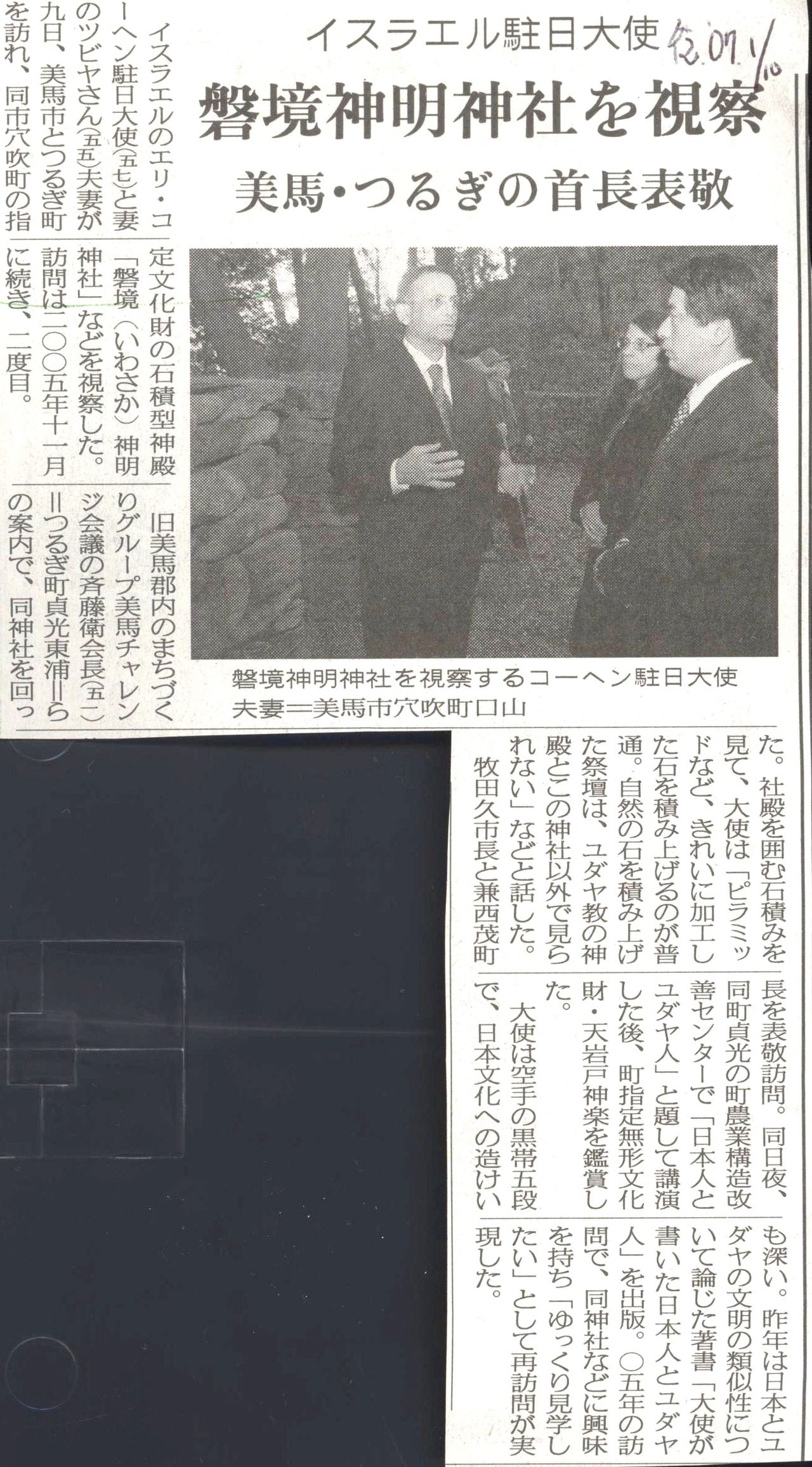 イスラエルのコーヘン大使が、穴吹の磐境明神神社を訪問して、イスラエルの神殿との類似を指摘、剣山にも登頂しその風景を見てある考えを深くしたという事のようである。