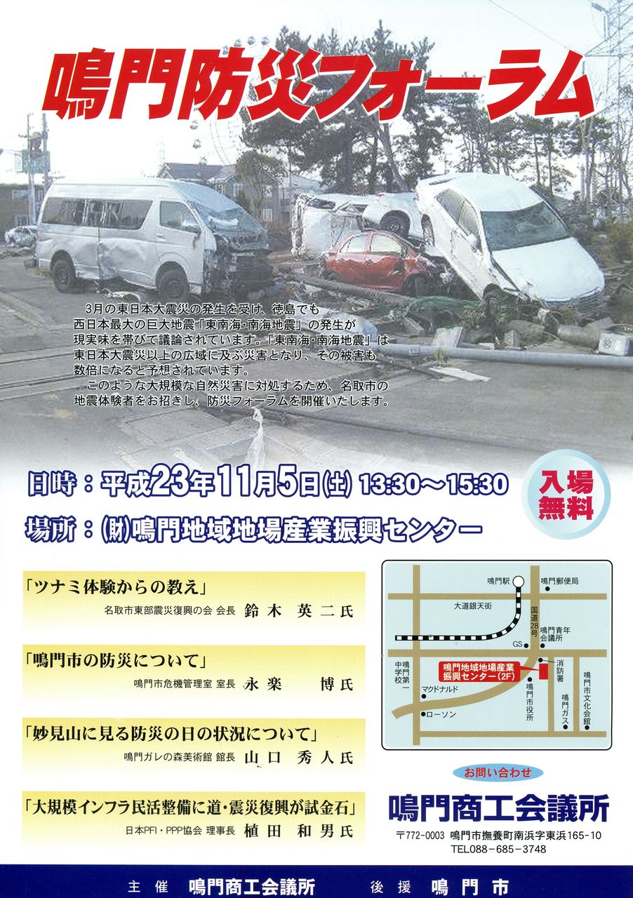11月5日、鳴門にて防災フォーラム。カジノで財源確保を//.